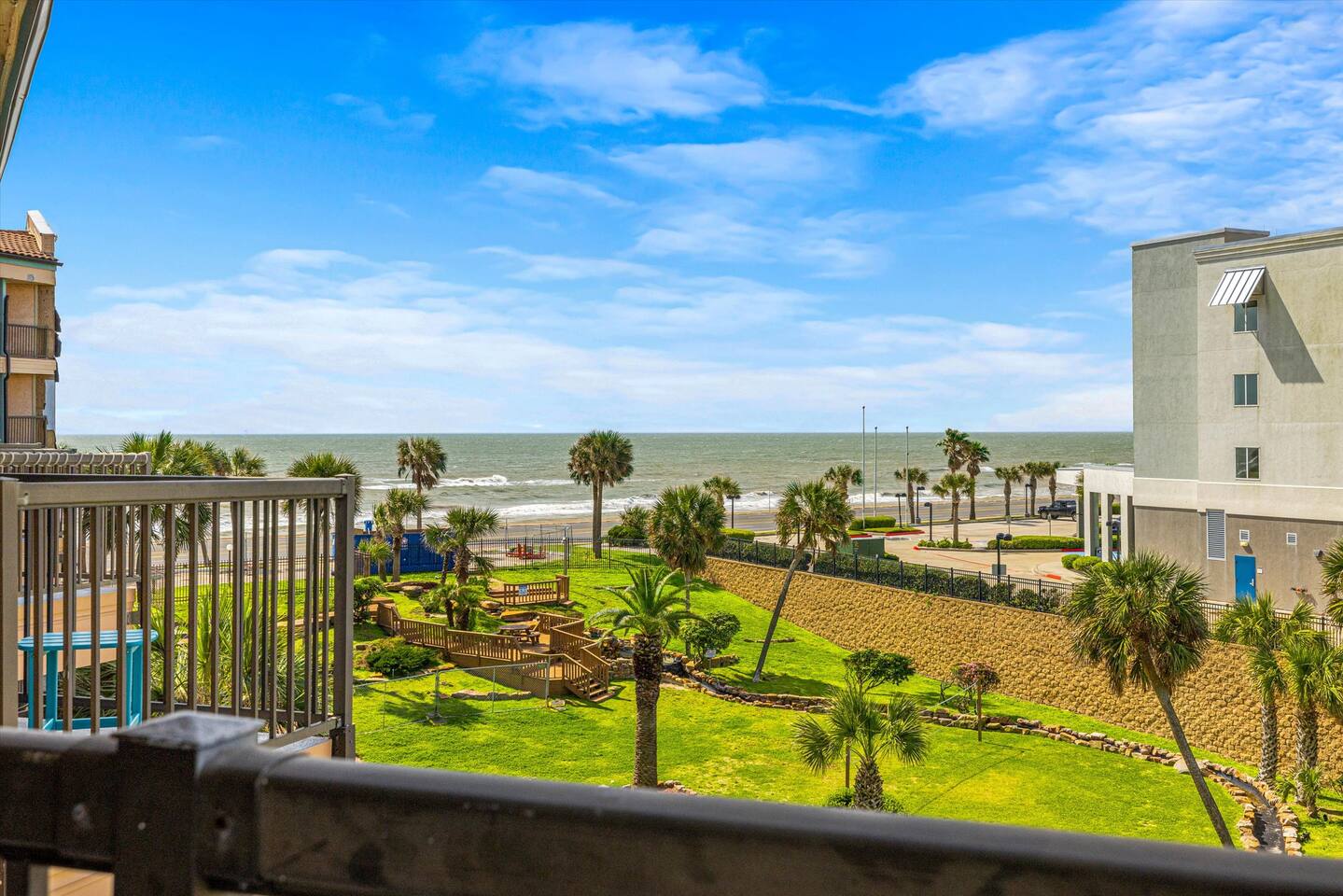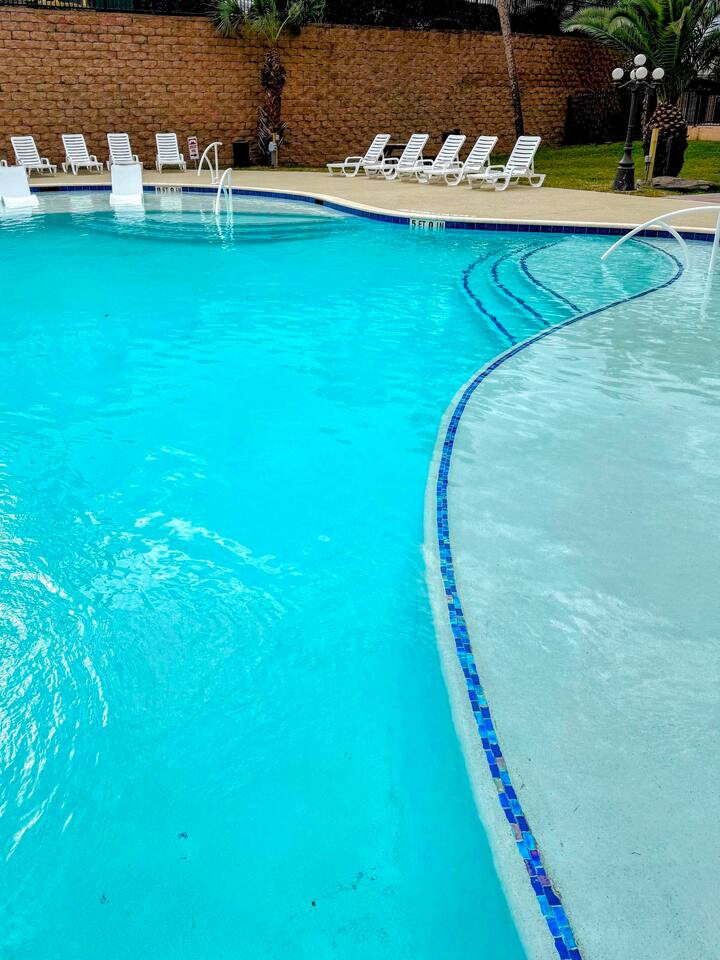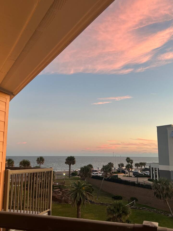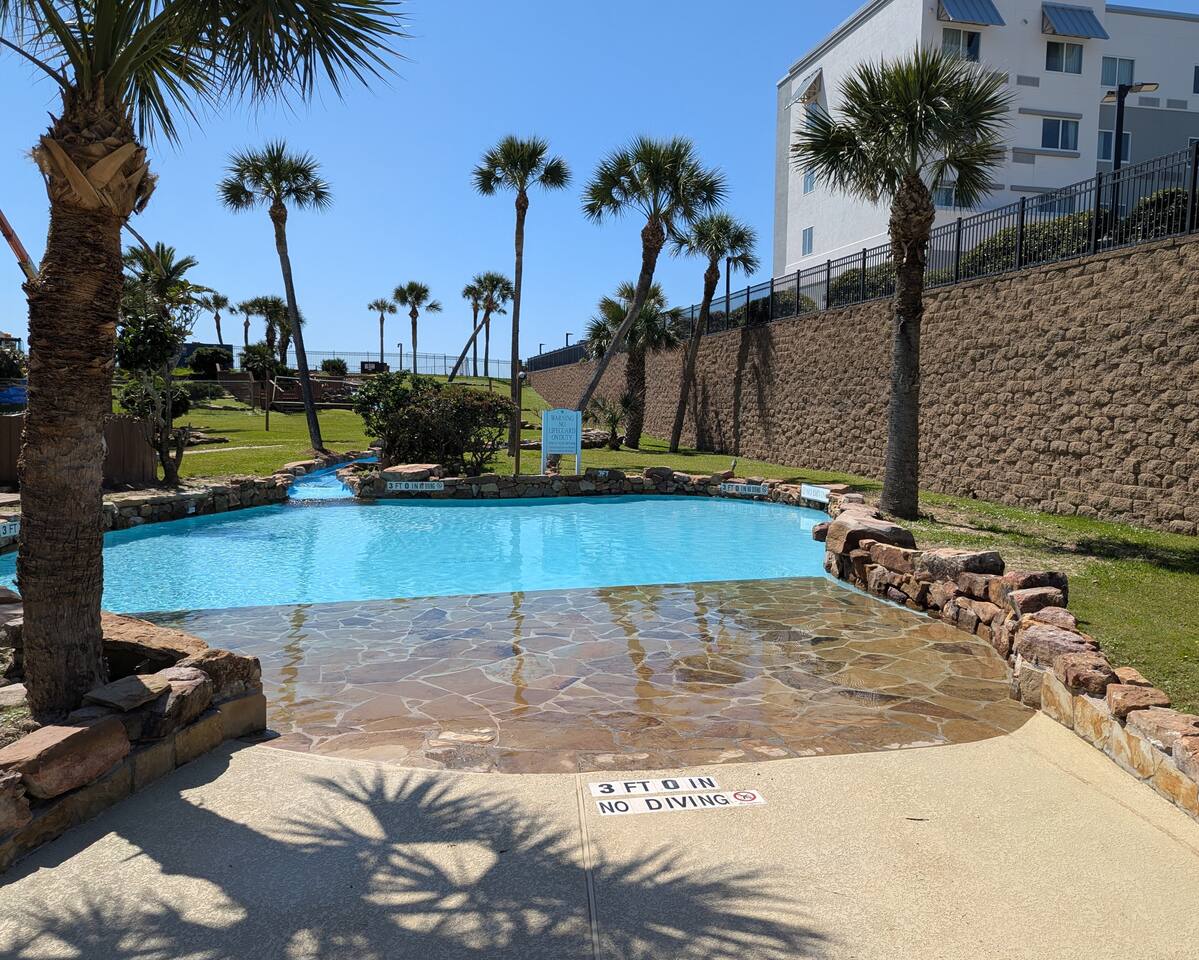 🏖️November 2025 - Newly renovated heated pool with 12 person hot tub added 🏖️ 🏝️March 2025 - Newly renovated resort pool and hot tub!!🏝️ Welcome to the Beach! The perfect place for a family vacation or a memorable getaway! Snow Birds and Winter Texans are all welcome! We offer long term winter rates every year. Please add a 30 day or more stay and the discount is automatically added in the estimate. 35% DISCOUNT FOR MONTHLY STAYS! Arrival: the unit is equipped with a smart lock making 24 hour check possible for whenever you arrive. Sleeping arrangements: the bedroom has a king size bed, the living room sleeper sofa also folds out to a king size bed as well for maximum guest comfort. Kitchen: A fully stocked kitchen in the unit awaits! This includes dishes, toaster, air fryer, blender, electric mixer and can opener, utensils, coffee maker, wine and martini glasses, pots and pans, and dishes for kids including placemats just to name a few. Dining: The unit has an open arrangement with dining options at the four seater countertop bar, dine outside on the spacious balcony or enjoy the television from the comfort of the couch! Balcony is fully open and accessible! The outdoor table set is perfect for enjoying the beautiful sunsets or a nice outdoor dinner! This luxury vacation unit offers high speed internet and breathtaking views. Beach access: The property is located directly across the street from the beach making this unit a short walk to your toes in the sand. BEACH ESSENTIALS! The unit has a shared amenity closet just for our guests that include beach necessities such as a beach wagon, cooler, beach umbrella and umbrella anchor! There are beach towels also located in the unit for guest use. Additional items in the shared amenity closet include dog bowls, dog bed, space for hanging clothes, an iron and ironing board, fold out desk and office chair for working. All linens are provided, the unit also has a full size washer and dryer available for use. Maravilla grounds include: three pools, hot tub, access to a fitness center, picnic tables, grills, dog park, dog bath station and more for your enjoyment! Note that these are shared amenities and are on a first come, first serve basis. The property is minutes from attractions like Pleasure Pier, Moody Gardens and the Strand! The unit is also only a quick drive to the Cruise Ship Terminals where Norwegian and Royal Caribbean are sailing from. Departure: 100% of the cleaning fee goes to our cleaning crew so there is not a long to-do list when you leave!!