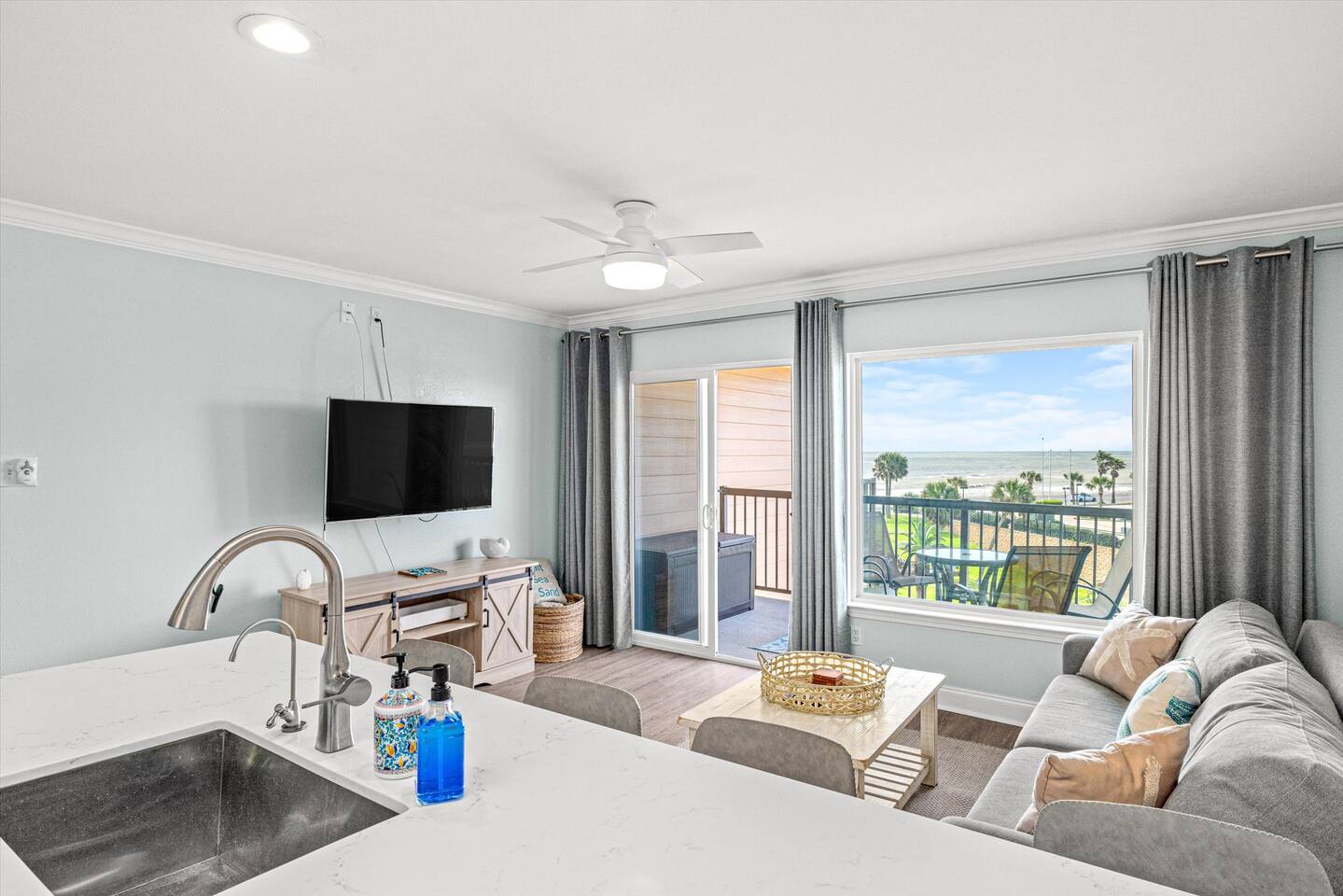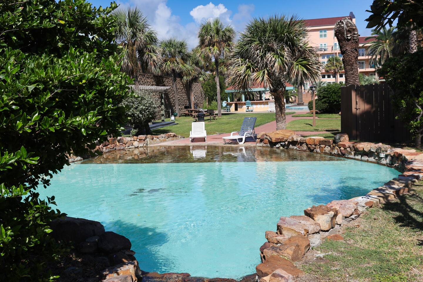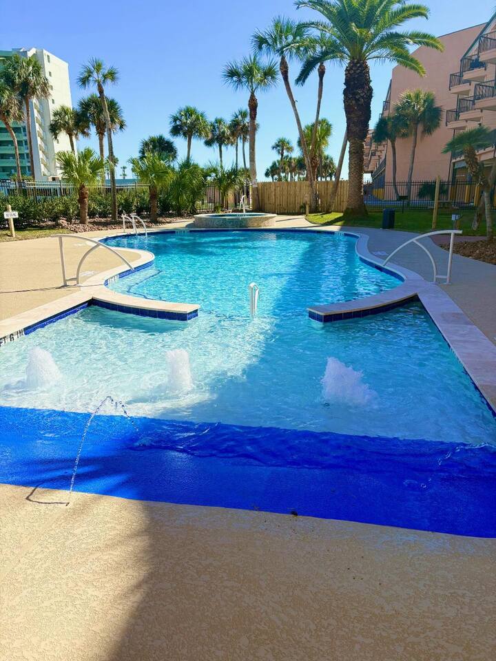 🏖️November 2025 - Newly renovated heated pool with 12 person hot tub added 🏖️ 🏝️March 2025 - Newly renovated resort pool and hot tub!!🏝️ Welcome to the Beach! The perfect place for a family vacation or a memorable getaway! Snow Birds and Winter Texans are all welcome! We offer long term winter rates every year. Please add a 30 day or more stay and the discount is automatically added in the estimate. 35% DISCOUNT FOR MONTHLY STAYS! Arrival: the unit is equipped with a smart lock making 24 hour check possible for whenever you arrive. Sleeping arrangements: the bedroom has a king size bed, the living room sleeper sofa also folds out to a king size bed as well for maximum guest comfort. Kitchen: A fully stocked kitchen in the unit awaits! This includes dishes, toaster, air fryer, blender, electric mixer and can opener, utensils, coffee maker, wine and martini glasses, pots and pans, and dishes for kids including placemats just to name a few. Dining: The unit has an open arrangement with dining options at the four seater countertop bar, dine outside on the spacious balcony or enjoy the television from the comfort of the couch! Balcony is fully open and accessible! The outdoor table set is perfect for enjoying the beautiful sunsets or a nice outdoor dinner! This luxury vacation unit offers high speed internet and breathtaking views. Beach access: The property is located directly across the street from the beach making this unit a short walk to your toes in the sand. BEACH ESSENTIALS! The unit has a shared amenity closet just for our guests that include beach necessities such as a beach wagon, cooler, beach umbrella and umbrella anchor! There are beach towels also located in the unit for guest use. Additional items in the shared amenity closet include dog bowls, dog bed, space for hanging clothes, an iron and ironing board, fold out desk and office chair for working. All linens are provided, the unit also has a full size washer and dryer available for use. Maravilla grounds include: three pools, hot tub, access to a fitness center, picnic tables, grills, dog park, dog bath station and more for your enjoyment! Note that these are shared amenities and are on a first come, first serve basis. The property is minutes from attractions like Pleasure Pier, Moody Gardens and the Strand! The unit is also only a quick drive to the Cruise Ship Terminals where Norwegian and Royal Caribbean are sailing from. Departure: 100% of the cleaning fee goes to our cleaning crew so there is not a long to-do list when you leave!!