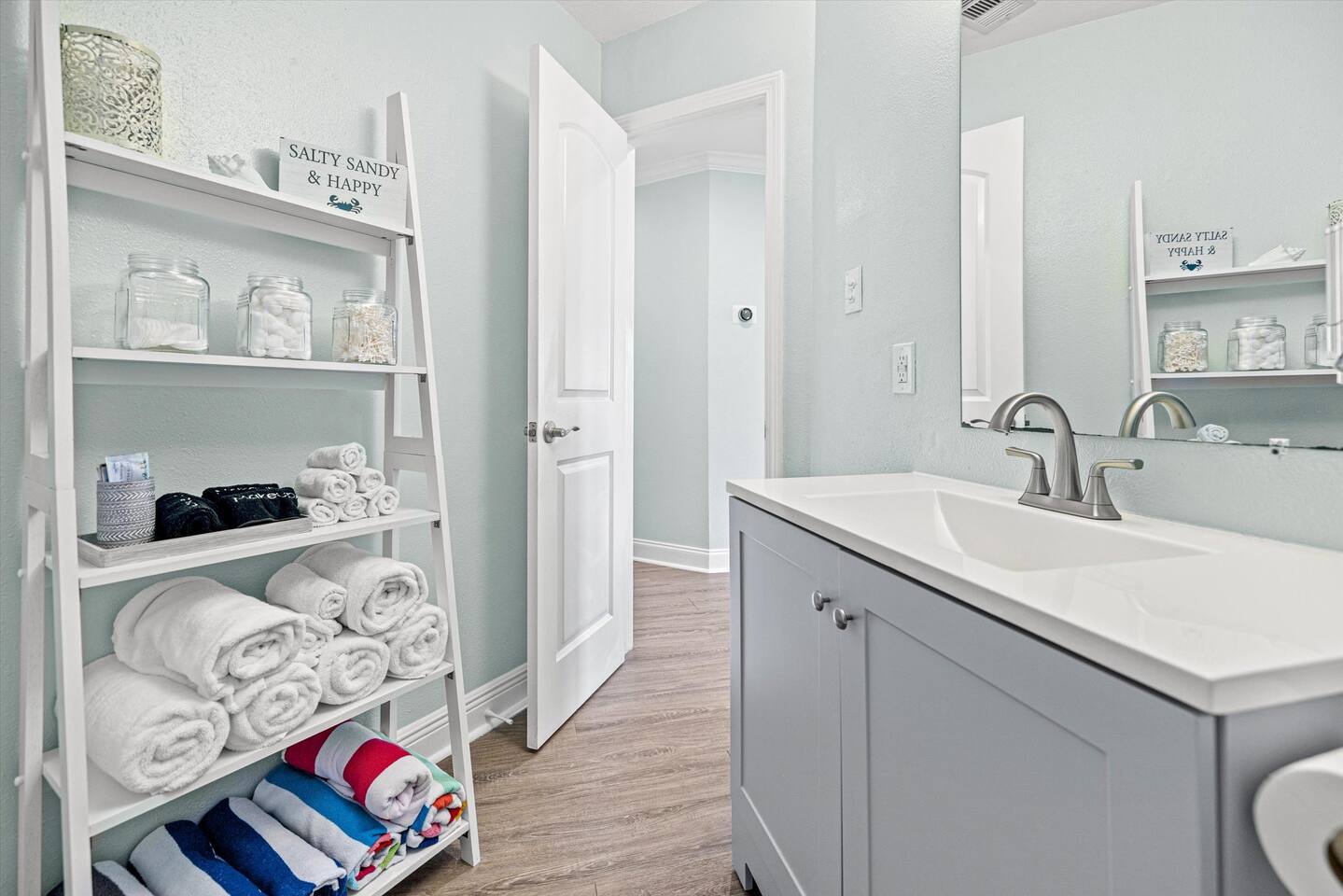 - Beach essentials Beach towels, umbrella, beach blanket, snorkeling gear